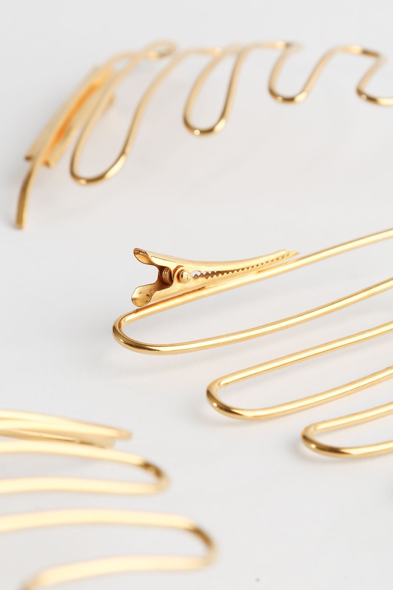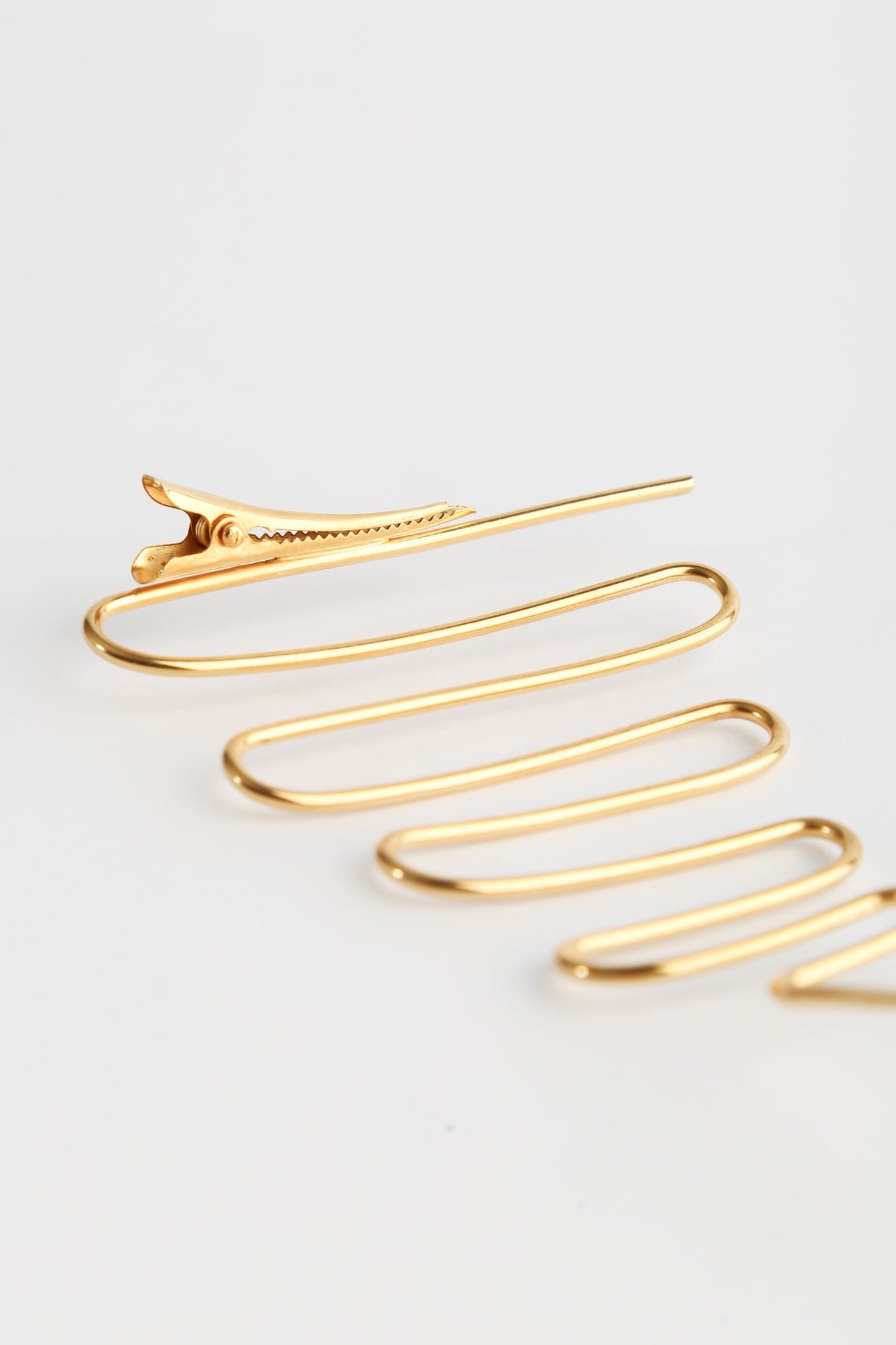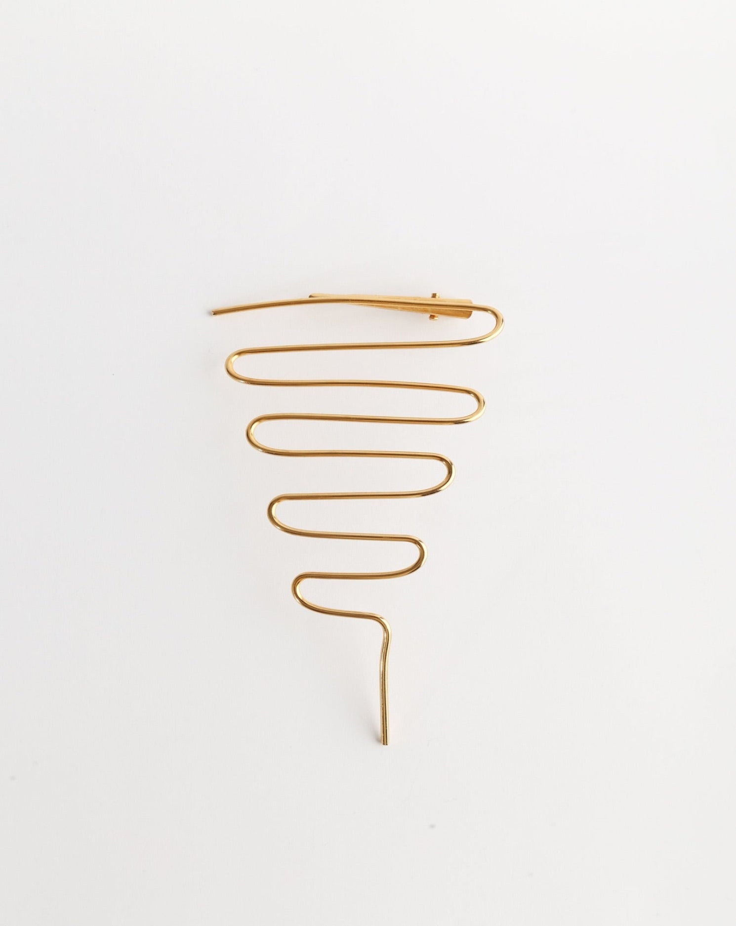 The Sonata Hair Clip reimagines the classic accessory with a sculptural metallic spiral silhouette — lightweight yet bold. Its fluid structure symbolizes movement and modernity, making it a statement piece that transcends functionality to become a true designer jewel.
